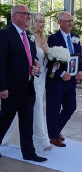 Michael holding a picture of her father