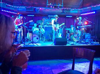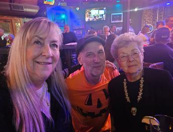 Halloween is Tony's birthday. Tony had a concert that night and Linda (who were here from California) and I decided to attend his concert. He was SO surprised to see us there. It was a fun night. He is an excellent Bass Guitar player. and the band was great to see. Carla has her cat ears on and I have my skeleton necklace on to celebrate Halloween. Carla's sister and brother were there, too.